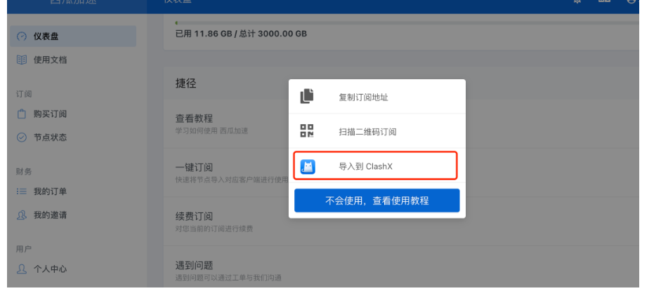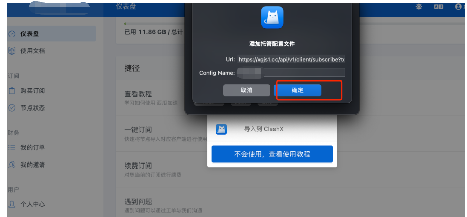 4、下载ClashX 导入的官网 刚刚购买的
