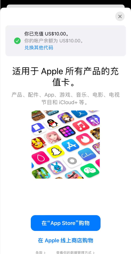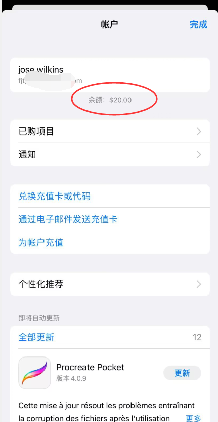 4.按同样的方法,兑换另外一张礼品卡,兑换成功后,返回账户,能看到这里有20美金余额。