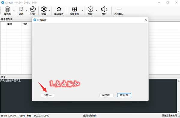 4、把刚复制的订阅地址粘贴进来 备注可以任意填写,点击下方的确定