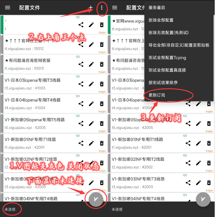 1、V2ray右下角V图标要先关闭,关闭后是灰色,下方显示未连接
