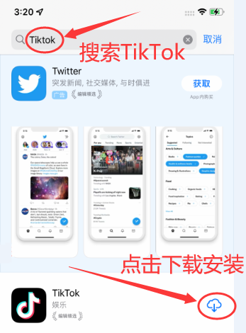 二.登录账号以后,登录账号以后,在商店里搜索下载tiktok和Shadowrocket(小火箭)